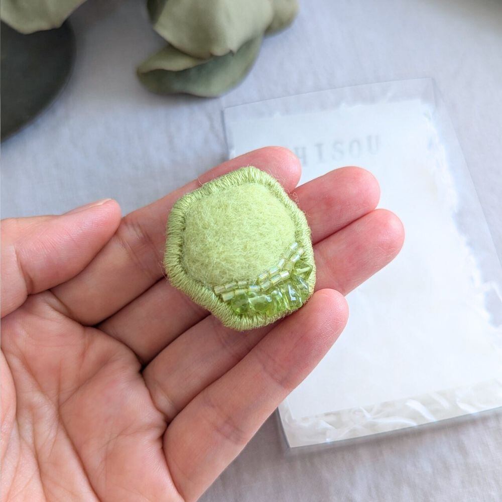 シンプルでシックな、身に着ける人を輝かせるブローチを理想に色味や大きさなど、いろいろ試しながら制作しました。