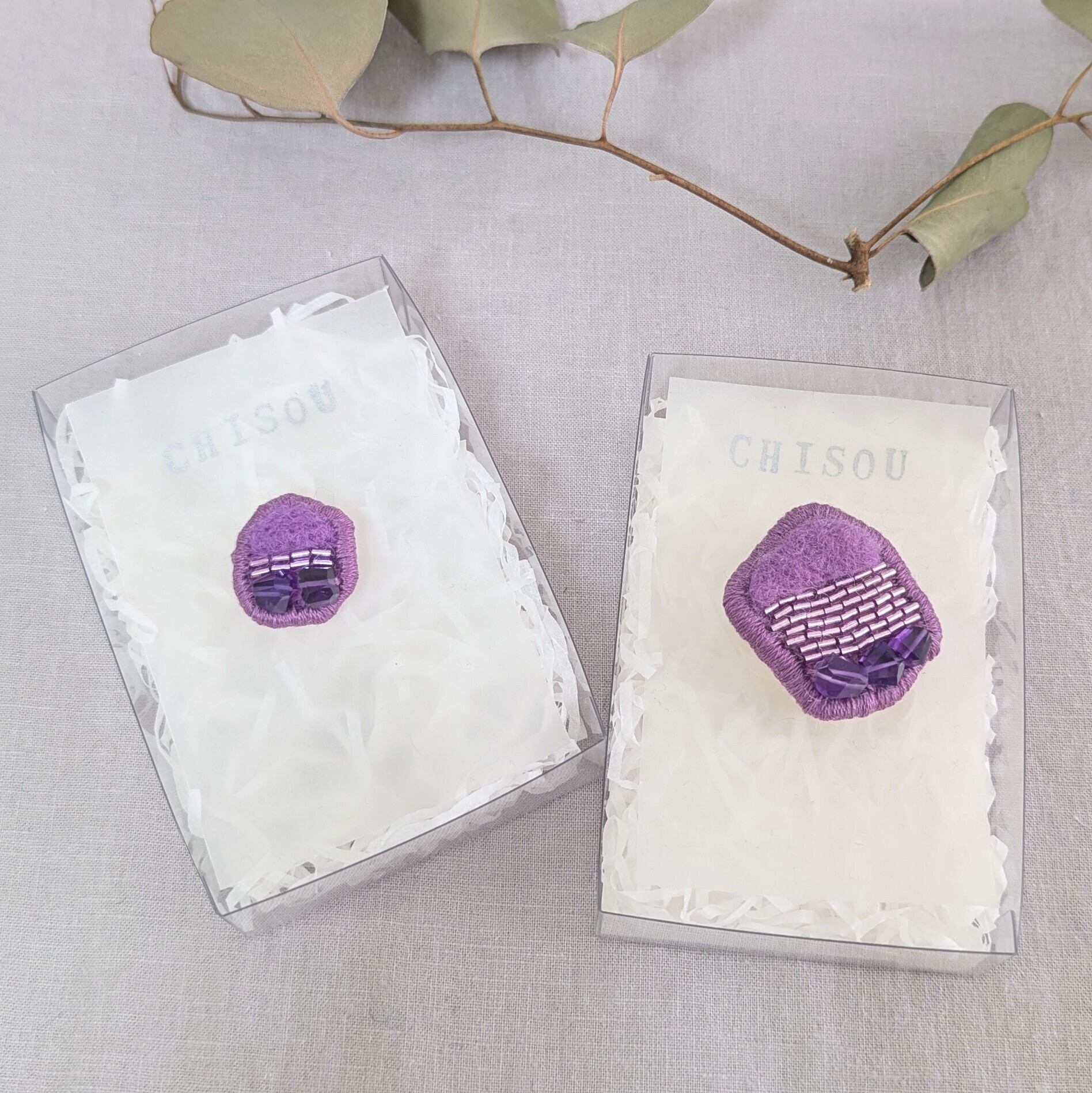 シンプルでシックな、身に着ける人を輝かせるブローチを理想に色味や大きさなど、いろいろ試しながら制作しました。