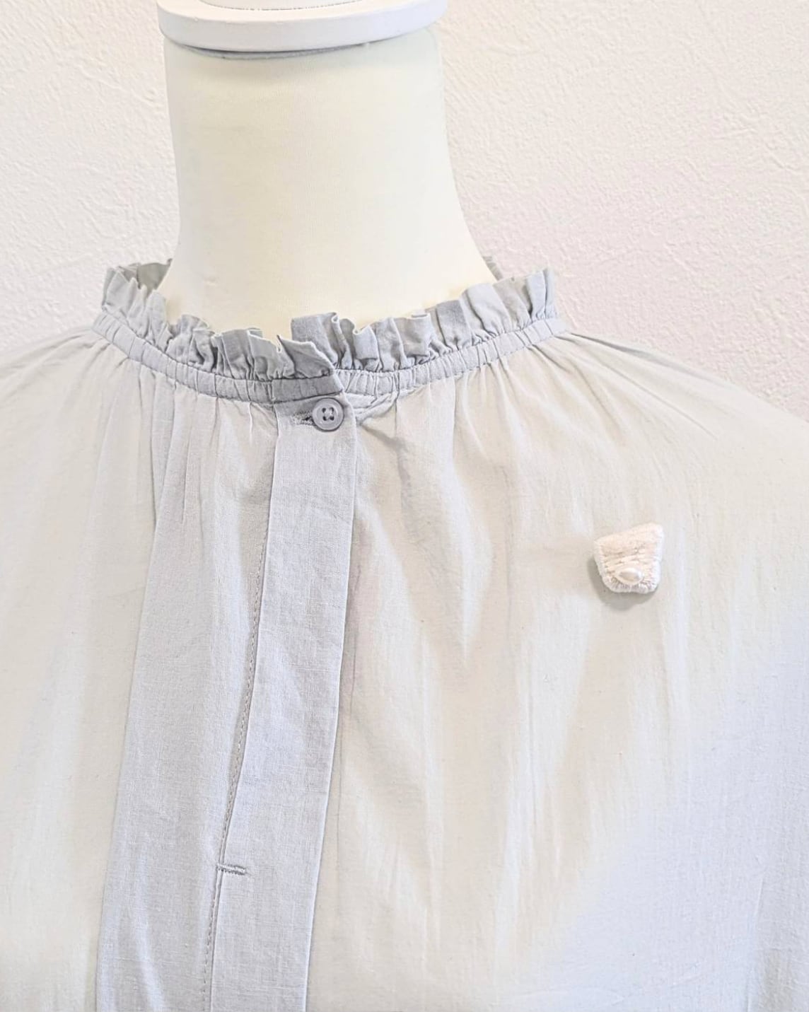 リネンやコットンなど、天然素材のお洋服にやさしく馴染みます。