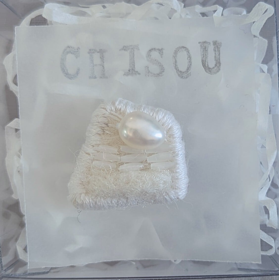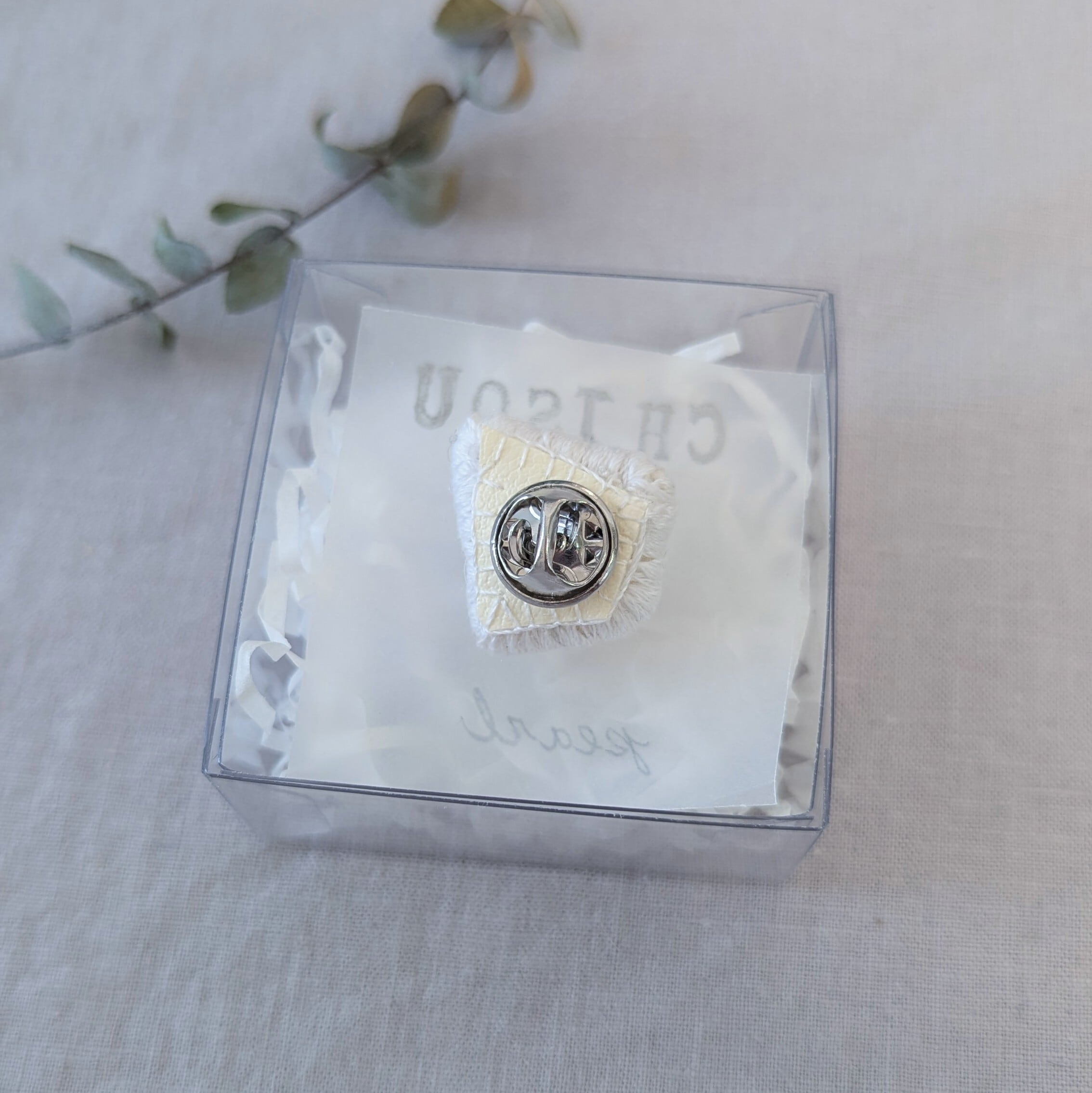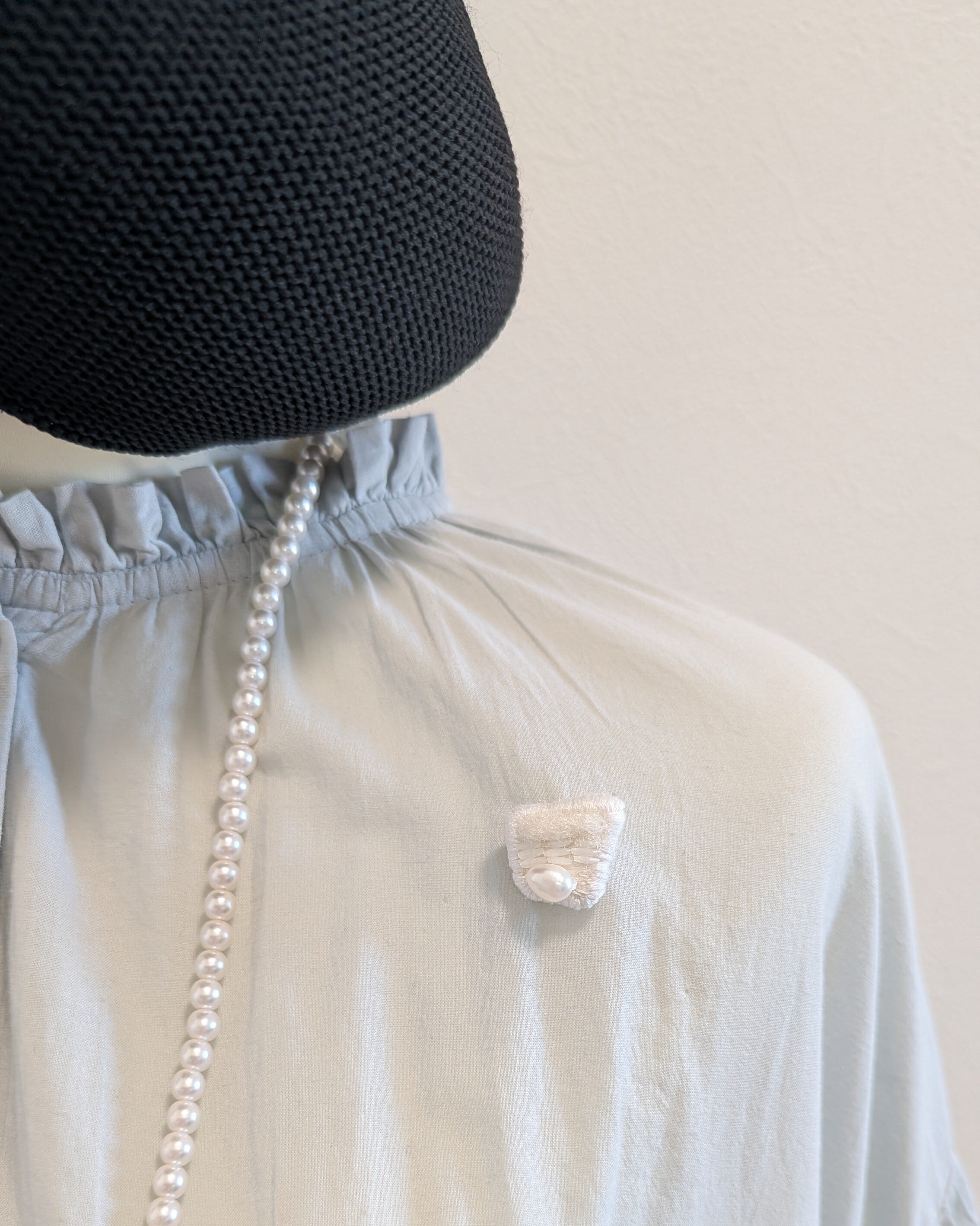 さまざまな色に合わせやすい、真っ白なブローチです。