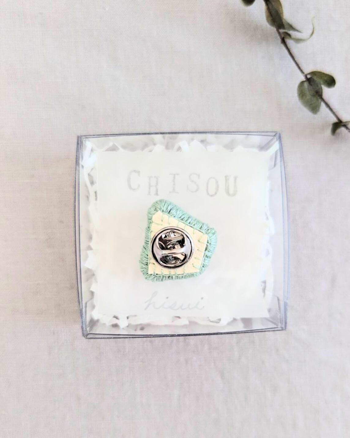 一色を異なる素材で仕立てたブローチです。