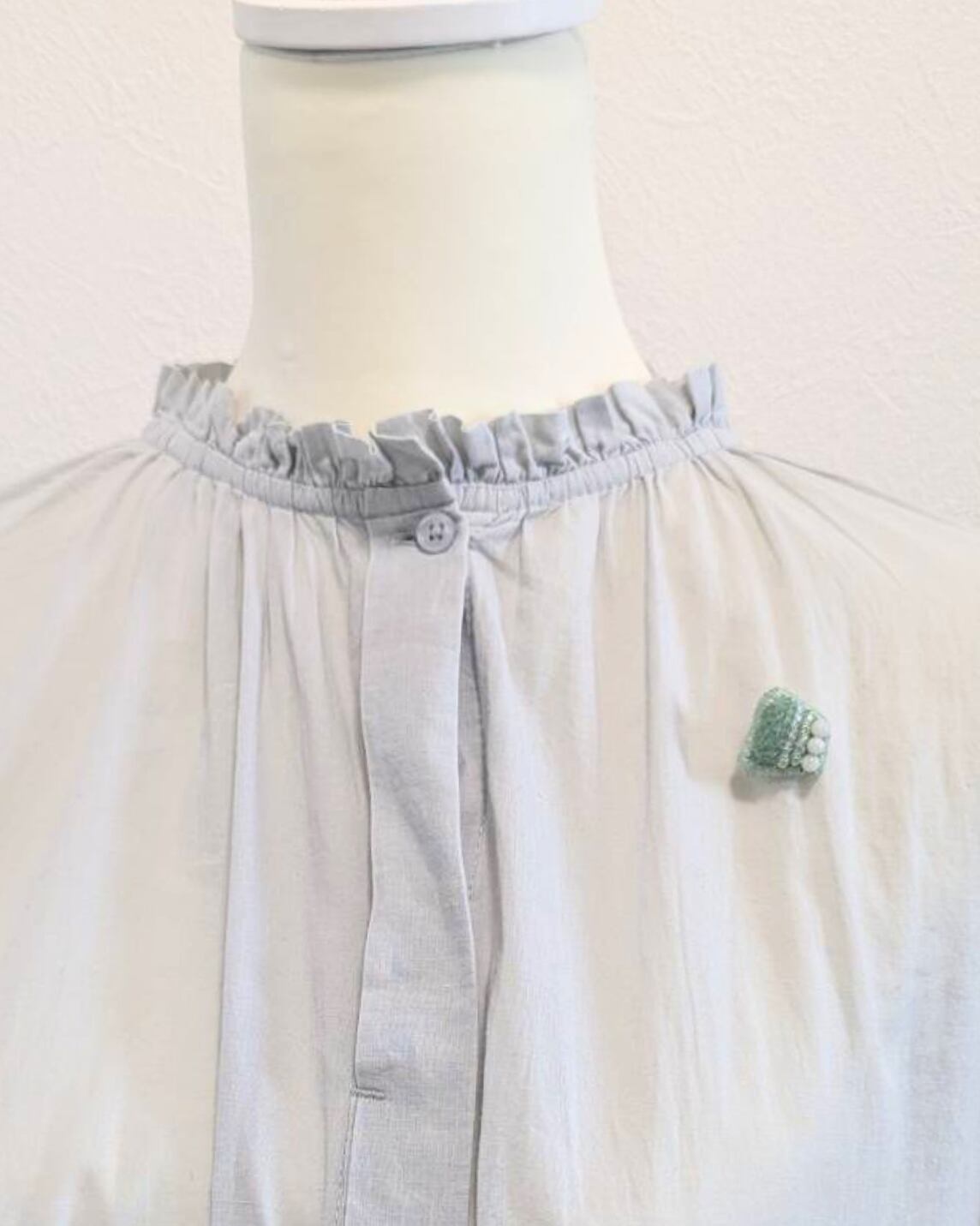 薄い青緑色のお洋服に重ねると、