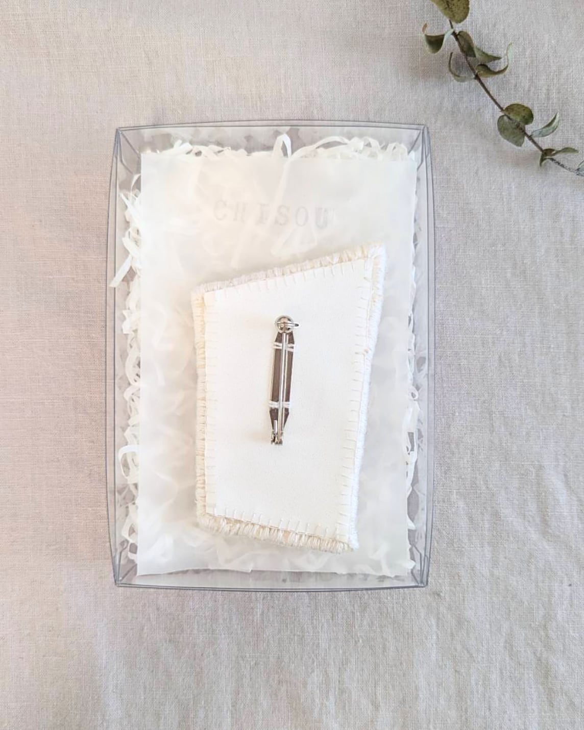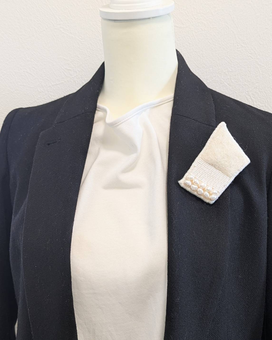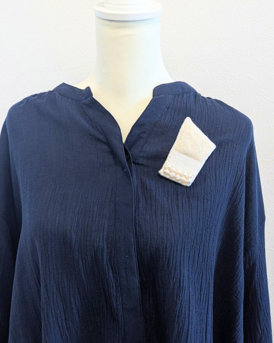 一色を異なる素材で仕立てたブローチです。