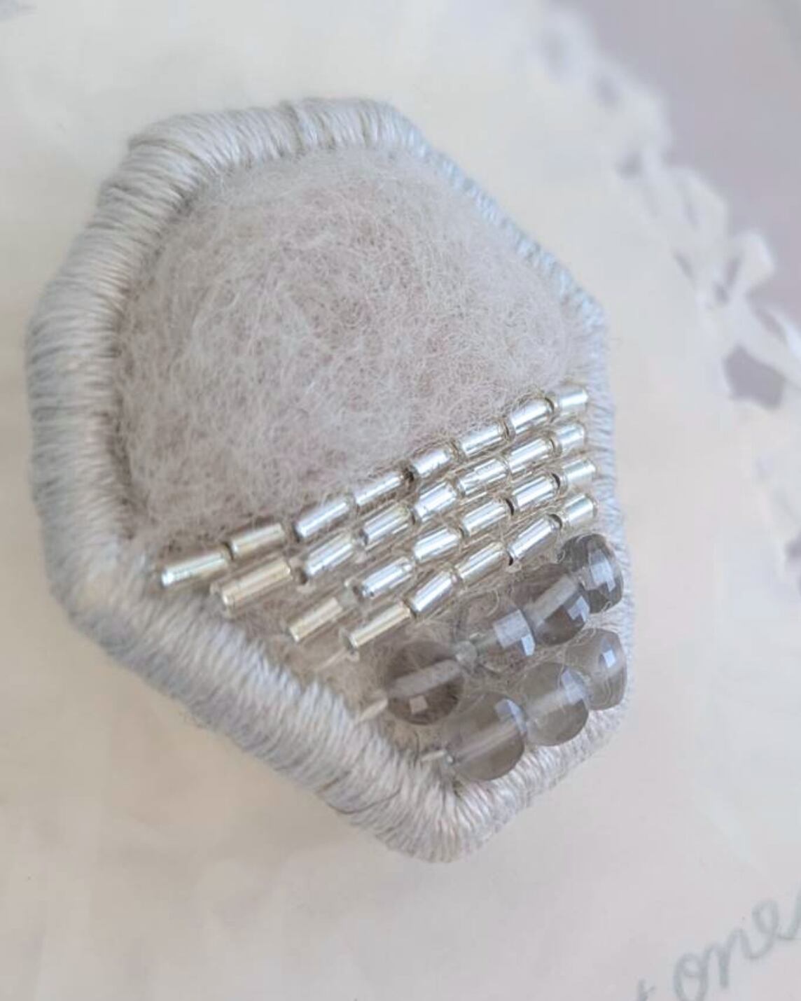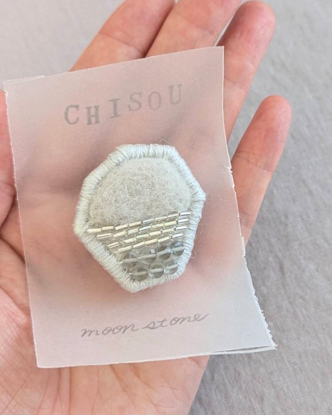 やわらかな光を放つライトグレーの天然石、ムーンストーンを使用しています。