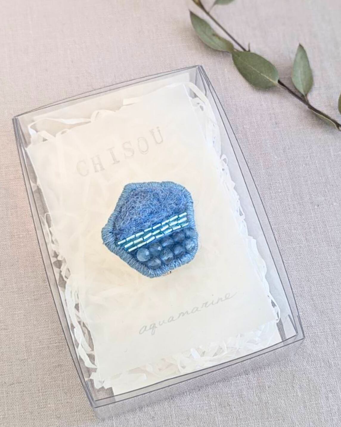 澄んだ水色が印象的な天然石、アクアマリンを使用しています。